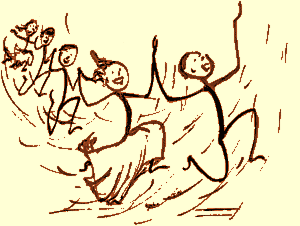 Walzer..., Polka..., ja, das hat man schon mal gehört! Aber was soll Sirba, Joc und An Dro sein? In was für einer Sprache reden Leute, die Yeni Hamam und Yibaneh ha-Migdash aussprechen können? Und wovon ist die Rede? Also kurz nennen wir das „Internationalen Folktanz“. Paar-, Kreis- und Kettentänze aus den verschiedensten Ecken Europas kommen bei uns an einem Abend zusammen. In die Luft gesprungene israelische Kreistänze wechseln sich mit bodenständigen griechischen Kettentänzen ab. Einer hitzigen französischen Bourrée folgt ein ruhig gedrehter Walzer.